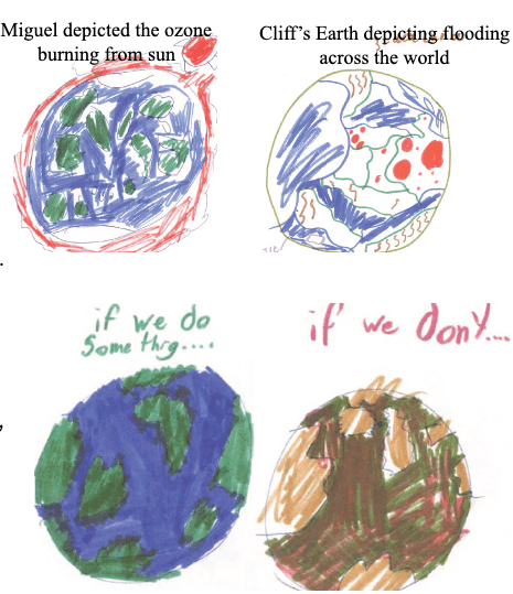Across the world, children and young people are articulating an emotional burden that should trouble us deeply. This fear of the environment crisis is not new – and studies have abound for decades around understanding how children feel about the environment. Connell and Hutchinson in Australia in 1997 & 1999, Barraza also in 1999, Hick & Holder—all show a pattern: children express fear, sadness, cynicism, powerlessness, and grief. Children in Barazzas study depicting drawings of Earthly pollution, global warming, loss of species, lack of water, and deforestation. Strife’s study in Denver found over 80% of children worried about environmental destruction, global warming, air pollution and the way humans were killing animals, the project highlighted children’s sense of pessimism, anger, helplessness, and frustration.